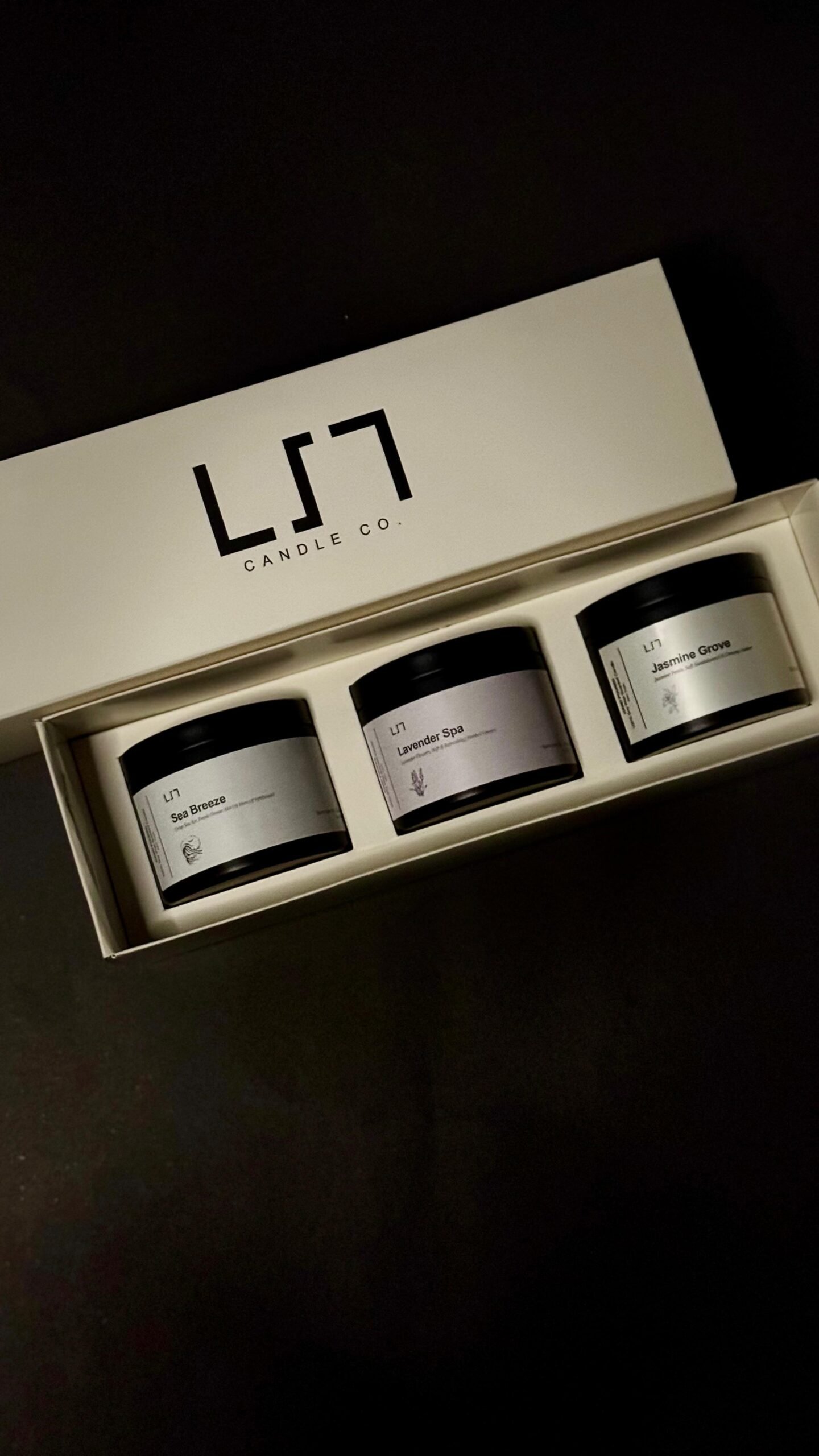 The set includes three 4oz handcrafted candles, poured in Portugal using natural soy wax and premium fragrance oils. Customize each candle with your favorite scent and jar style to create a collection that feels uniquely yours.